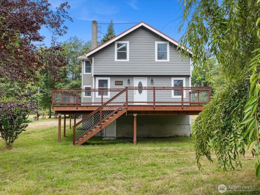 Welcome to this beautifully renovated home nestled among lush farmland! This thoughtfully remodeled home sits on nearly 5 scenic acres featuring a large barn, established fruit & nut trees, & wild grapes; perfect for those craving space & serenity. Inside you'll find upgrades from top to bottom: bamboo hardwood laminate flooring, tiled bathrooms, & modern fixtures throughout. Wiring, plumbing, windows, well, and septic have all been updated. The exterior includes new siding/gutters & a wraparound deck to further enjoy the views or entertain. The partially finished basement features new concrete floors & support beams. The barn has a new 100amp service, huge hay loft & is ready for your workshop or for horses (3 matted stalls).