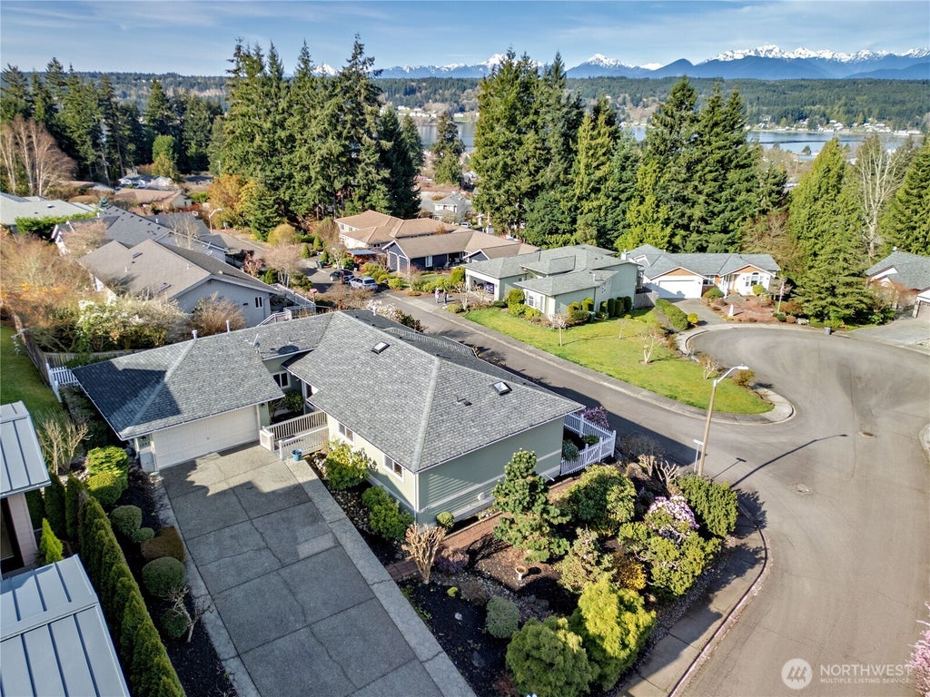 Beautiful, updated Single Story ~ Perched on a sunny corner lot offering filtered views of Liberty Bay and the Olympic. Updated single-story home offers effortless style and comfort. Skylights and wood-wrapped windows fill the space with natural light. The kitchen features abundant storage and opens to a cozy great room & all-seasons porch. Spacious primary inclds huge walk-in closet. Tons of storage. Private den w/ exterior access leads to a bright all-seasons room. Freshly painted inside & out with newer A/C. Low-maintenance landscaping. Just minutes to downtown charming Poulsbo, easy access to Bainbridge & Seattle ferries + area base all NK schools, trails + Raab park—this home is move-in ready and made for relaxed Northwest living.