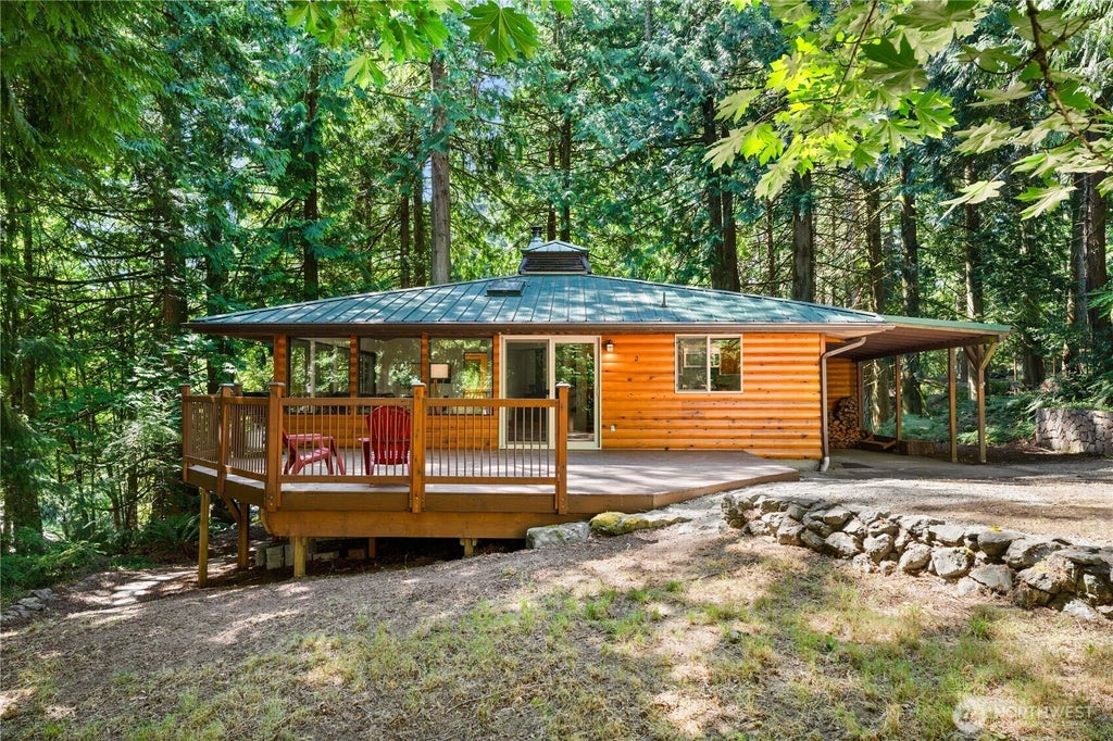 Nestled among the trees on a rare double lot, this thoughtfully updated home offers a unique blend of privacy and character. Soaring wood-plank ceilings and expansive windows fill the living area with natural light and classic Pacific Northwest charm. Recent improvements include fresh interior paint, a stylishly remodeled main bathroom, and a fully finished lower level featuring a second bath and flexible space ideal for guests, a studio, or additional bedrooms. Outside, enjoy the large deck, fire pit, and serene forested setting. Whether you're looking for a full-time residence or a peaceful getaway, this home offers versatility and value in the heart of Sudden Valley with community access to parks, trails, golf course, marina, and more.