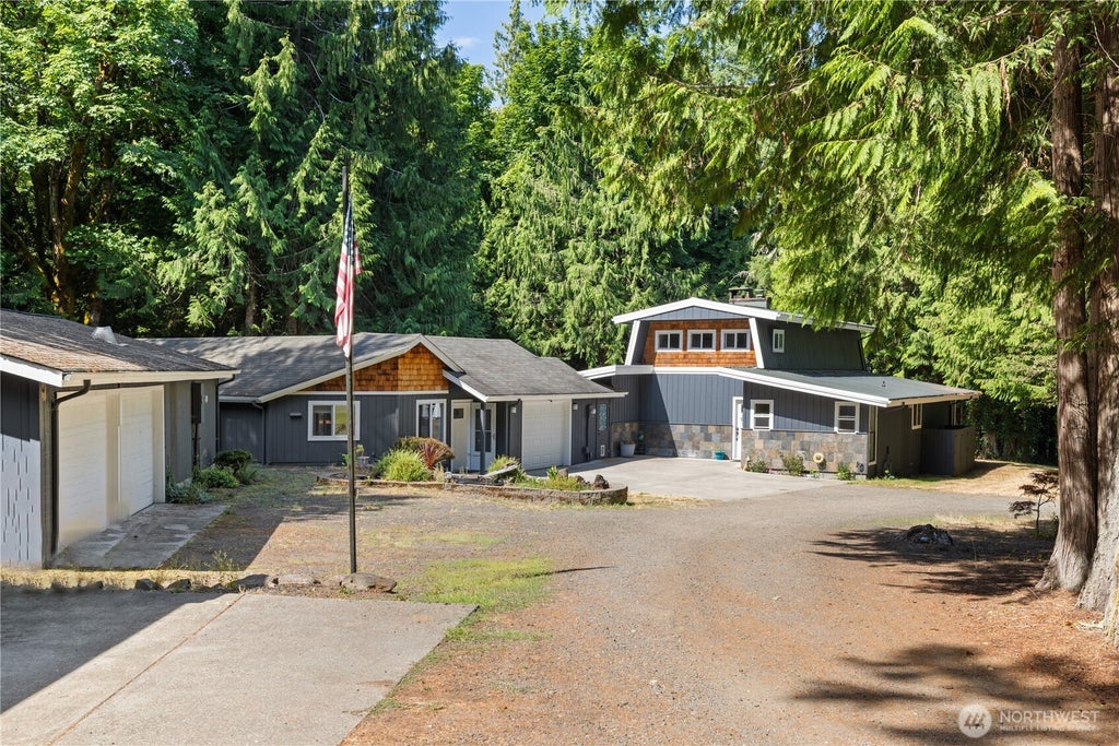 A truly unique property on 2.29 private acres in Silverdale! This beautifully updated 2,975 sq ft home features 3 bedrooms plus a separate living space with its own kitchen, bedroom, and ¾ bath—perfect for guests or multigenerational living. Enjoy custom finishes throughout, a modern kitchen with stainless appliances, and a bright living area with French doors leading to a large deck, hot tub, and greenhouse. Upstairs primary suite includes a private deck, dual vanity bath, and built-in safe. Ample space for all your tools and toys with an attached 1-car garage, detached 2-car garage with workspace, oversized shop, and RV parking. Mature landscaping provides privacy, all within the CK School District and close to bases, shopping, and more!