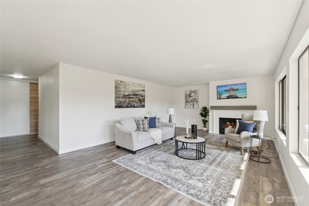 Discover comfort and style in this freshly remodeled North City condo, updated in June 2025 with LVP flooring, new carpet, fresh paint, and modernized kitchen and baths. Large windows flood the oversized living room with natural light, complemented by a wood-burning fireplace and a formal dining area. An expansive deck spans the full length of the unit, perfect for outdoor relaxation. The generous primary bedroom offers a private ¾ bath, while a second bedroom provides flexibility. Additional features include covered parking, three storage lockers, a triple-door entry closet, and access to a cabana party room. RV parking available in a separate lot. Conveniently located near the freeway, bus lines, and shopping.
