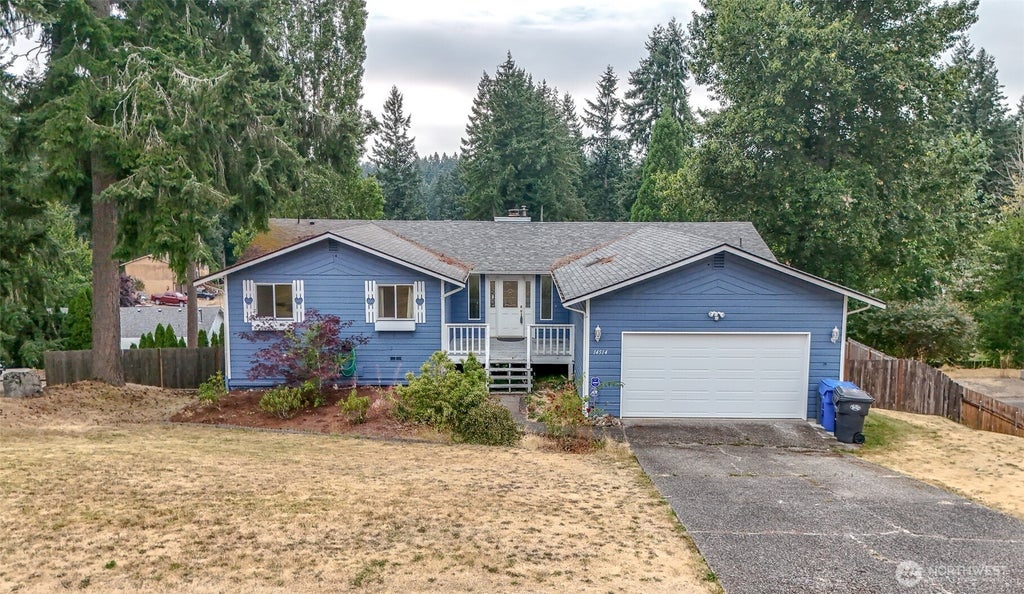 Welcome to one level living on the main floor and Bonus living space in the fully finished basement. This Forest Estates spacious home offers a newer roof, newer exterior paint, double pane windows, and opportunity for you to customize your space. Oversized primary suite with full bath, double vanity, tile floors, walk in closet, and vaulted ceilings. Three bedrooms on main floor, two full baths, formal living room, and spacious kitchen with dining room. Enjoy the large recreation room downstairs, wood stove, tile floors for low maintenance, one bedroom, utility room, crawlspace storage, full bathroom, and access to large aggregate patio and oversized deck. Perfect for entertaining guests. Restore the brick outdoor fireplace/BBQ!
