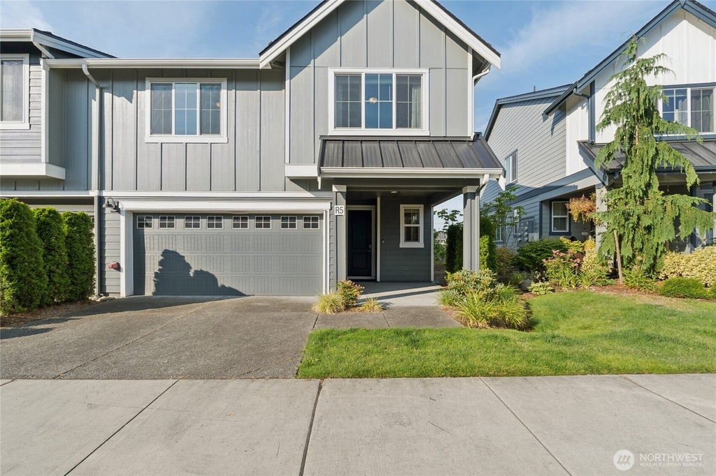 Located in the heart of Mill Creek! This stunning two-story Blue Jay floor plan is perfectly situated on the pond and offers breathtaking views of Mt. Rainier and private pond! Incredible westerly exposure that floods the great room and kitchen with natural light. The gourmet kitchen is a chef’s dream—featuring a large island with seating, sleek quartz countertops, 42" stained Beech cabinets, a deep undermount sink, full-height tile backsplash, and stainless steel appliances. Retreat to the luxurious primary suite, where the spa-like bath includes dual vanities, a large soaking tub, and separate shower. Additional highlights include central air conditioning and beautifully curated finishes throughout. 2-car garage, and trails throughout!