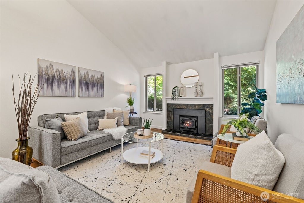 Discover effortless living in this stylish townhome! Steps from Crossroads' vibrant shops, restaurants, and parks. Enjoy sun-drenched spaces with vaulted ceilings, a cozy fireplace, and a beautifully updated kitchen with granite countertops. Relax in your private jasmine filled courtyard oasis with a clear cedar deck. Boasting 3 bedrooms (or 2 + office), a spacious master suite, 2-car garage, and community pool/clubhouse, it's the perfect blend of luxury and convenience near top schools, transit, and tech employers.