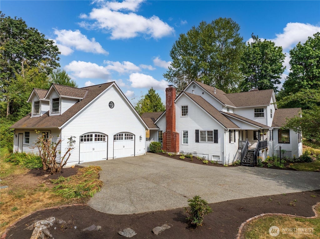 Stately, young, 3200 sq ft modern farmhouse quietly nestled on nearly 2 acres of beautiful, fertile land just 20 minutes from downtown Bothell, Woodinville & Snohomish. Built in 1991 with a vintage look yet all modern conveniences and recently remodeled. Central A/C, tankless hot water, generator, new granite kitchen counters, all new stainless appliances, new LVP flooring, 3 bedrooms, home office w/built-in desk, 4.5 baths including a full bonus room suite with full bath (Possible Rental or MIL ) above huge, 2-car garage w/shop space, 3 fireplaces (including 1 in primary suite), big wrap-around sun room, enormous enclosed garden area w/lush raised beds, a chicken coop & fenced dog run. Dramatic approach flanked by ornamental cherry trees.