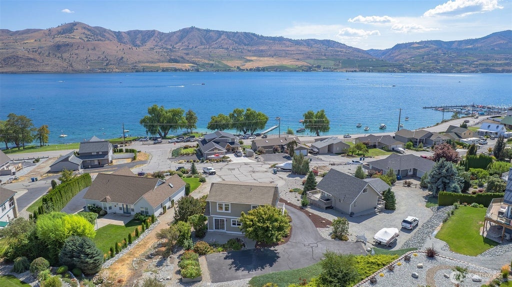 Huge lake views, great location, and best Chelan community waterfront neighborhood! Turnkey and ready for you to make memories. Still a lot of summer left to enjoy here. Less than a minute walk to the lakefront park. Huge lot, room to build detached garage and/or ADU. Large deck for entertaining and watching unbelievable sunsets! Gorgeous landscape and street appeal. Ideal vacation lake house or full time residence. Easy living as master w/ ensuite, kitchen, laundry and great room are all on main level! Two master suites. Can sleep 10+ people. Beautiful community waterfront parks, pristine community pools, boat launch, athletic court and playground. Close proximity to restaurants, wineries, stores, shopping and downtown Chelan.