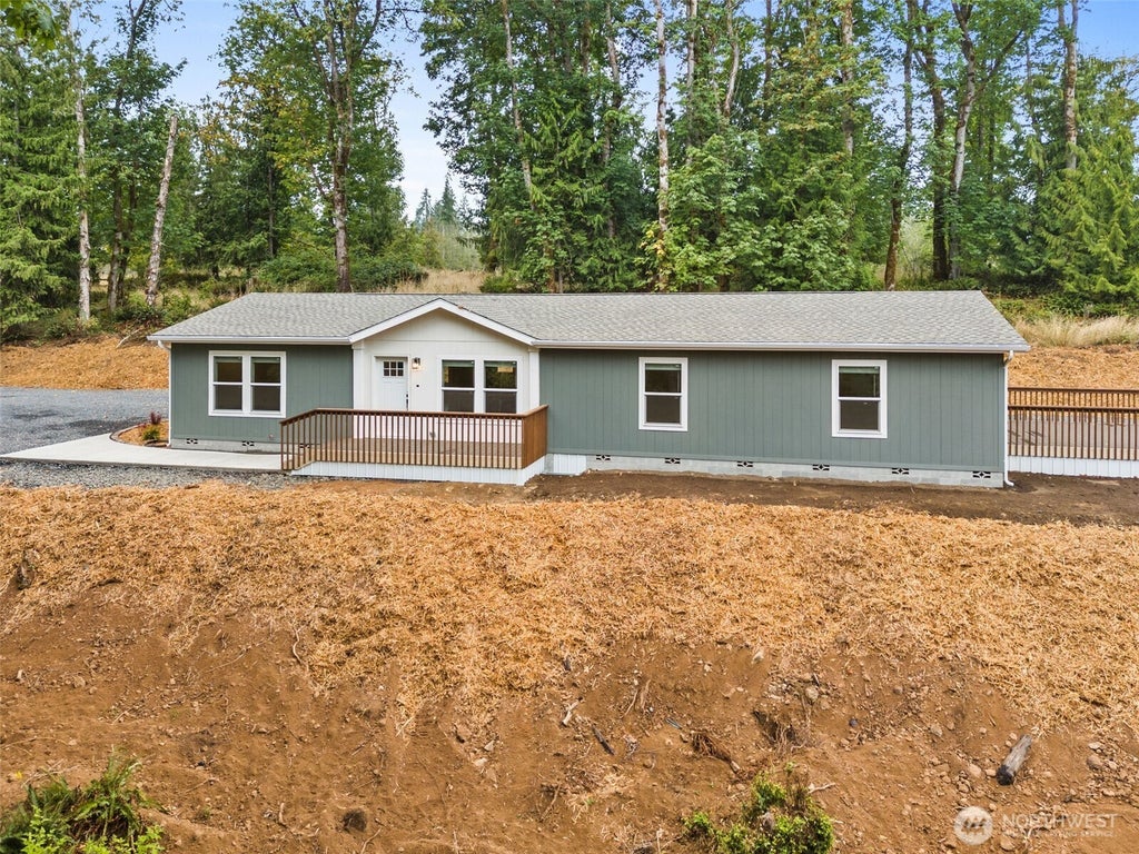 NEW - 1,782 sq ft manufactured home on 2+ acres in a great area and near the end of a dead-end paved road. The home has a popular floor plan - primary bedroom and adjoining 4-piece bath at one end, with 2 additional bedrooms at the opposite end and bonus room for den, office, ect. Private wooded setting with plenty of room leveled and ready for a large outbuilding. No HOA Come look today - less than 10 minutes to I-5 - midway between Seattle and Portland.