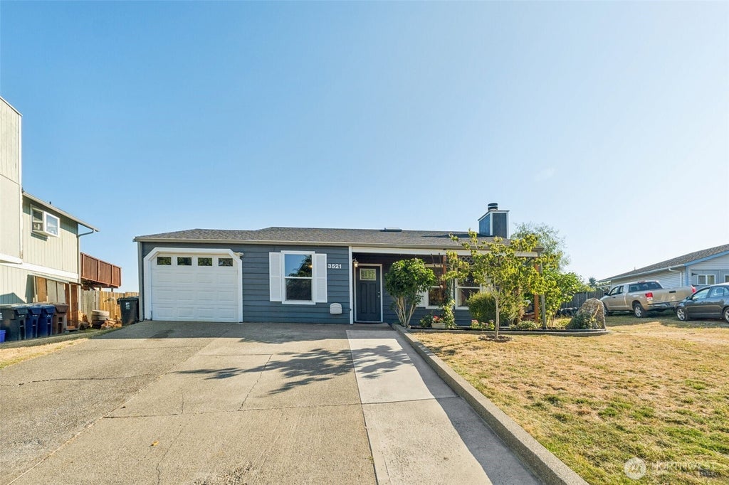 This charming home offers a kitchen with ample storage, a cozy living room with a fireplace, and a dedicated dining area. It features two bedrooms, one bathroom, and an additional flex room with new carpeting. The exterior boasts a covered front porch and a spacious backyard complete with a shaded patio and a storage shed. This home is conveniently located close to shopping and the bus line. Recent updates within the last five years include a renovated kitchen, a new roof, fully fenced backyard, trex decking on the front porch, new rear sliding glass doors and newly installed windows.