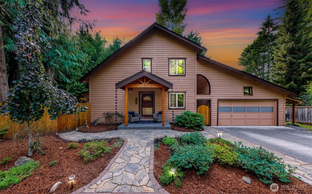 Tucked at the end of a quiet dead-end road in the Geneva neighborhood, this inviting home blends natural beauty with modern updates & standout design. The open-concept main floor features refinished wood floors, a remodeled 2024 kitchen with a dining area, vaulted great room with skylights, & wood beam accents. A cozy sunroom with brick floors, floor-to-ceiling windows, & fireplace offers a peaceful flex space. Upstairs, the primary suite feels tucked away among the trees, while another bedroom includes a fun loft. A bonus mezzanine adds versatile space for work or guests. Step outside to a private, fully fenced backyard retreat with a hot tub, entertainment-sized deck, & majestic evergreens. Giant garage with workshop. New roof in 2024.