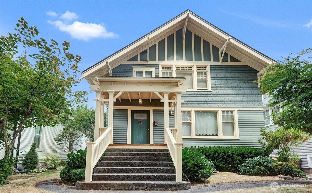 You've been waiting for a true North Tacoma Craftsman (close to Proctor district)—and here it is. This classic home features beautiful original hardwoods, unique coffered beam ceilings, a grand brick fireplace with detailed craftsmanship, radiant heat, and large windows that fill the space with natural light. The spacious kitchen offers ample storage and room to personalize. The partially finished basement includes a generous family room or theater space, plus a workshop area. Oversized rooms throughout, a fully fenced backyard, and a 1-car carport complete the package. Home is being sold as-is—don’t miss this opportunity to own a piece of Tacoma history.
