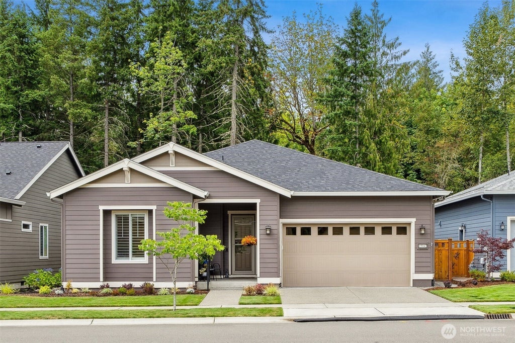 This Venture resale in 55+Trilogy community features its very own Guest Quarters complete w/ wet bar/ kitchenette, living rm, 3/4 bath & bedroom ideal for multigenerational living! The rest of this gorgeous home has a Great room that flows into a dining area & chef's kitchen complete w/ massive island, pendant lighting, quartz counters, SS appliances, & stylish tiled backsplash. Large Primary suite boasts a well appointed bathroom w/ double sinks & spacious walk in closet. Den, powder room & large laundry room w/ loads of counters & cabinets. The serene backyard on the green belt includes a covered patio, extended patio, mature landscaping, turf lawn is perfect for entertaining. Plantation shutters, AC & all appliances stay!