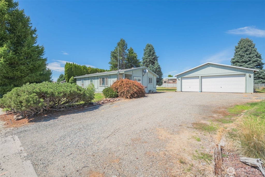 Looking for a place with potential? This 2 bed, 2 bath manufactured home offers a functional layout with a spacious kitchen, open living area, and a private primary suite. While it could use a little TLC and updating, it's a solid opportunity for someone who wants to build a little sweat equity. The home sits on a fenced lot with irrigation water, tons of parking AND a large 3-car detached shop/garage. Close to town, but feels more country with a larger .31 acre lot.