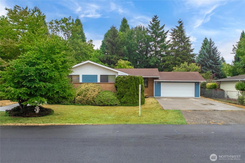 Come discover Kent's Hilltop Ave custom-built homes by historic resident & long-time builder Larry Clements. His design at 750 Hilltop Ave continues to reflect his original architectural Frank Lloyd Wright Taliesin style. Enter & enjoy this unique design with custom woodworking & cantilevered lighting. The 1600sf main level includes a spacious living room, fireside family room, dining room, central kitchen, primary bedroom with 3/4 bath, 2 add'l bedrooms & main bath. Below is the gas fireside recreation room, bonus room/shop & storage, plus 2 add'l bedrooms, laundry & a 3/4 bath. The attached garage has a separate entrance. Ramp & RV Parking. New electrical panel. Entertainment-sized deck & large private backyard. Cute as can be "she-shed".