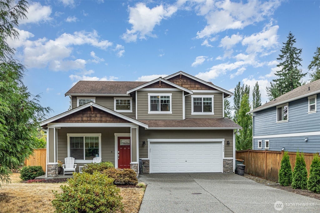 Abundant natural light, Brazilian Teak hardwood & plenty of space to entertain with both a formal living room (currently used as large home office/game room) & a light-filled Great Room w/fireplace, space for large dinging table & a HUGE kitchen! Granite countertops, stainless appliances & so much cabinet space! Buyers choice: current induction stove or the former gas range can be reinstalled. 4 large bedrooms upstairs, including primary w/walk-in closet & 5-piece bath. Double sinks in main bath, conveniently located laundry & a bonus area perfect for a small piano space or petite home office. A/C, easy-care fenced yard/large patio & hidden gate to adjacent play area. Close in time to start the year in the highly rated NORTHSHORE SCHOOLS!