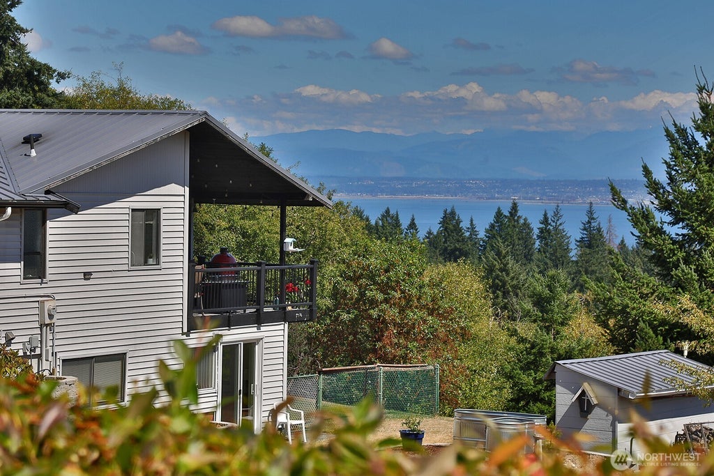 Awake to spectacular colorful sunrises, soaring eagles & views of Puget Sound, Ferries, and the Cascades. Enjoy your morning coffee sitting on the side deck. End the day with your favorite beverage, relaxing to the sunset-lit waters & twinkling city lights of Everett in the evenings. Enjoy vaulted ceilings & oversized windows showing off the view & wildlife. The kitchen has been updated with modern features, such as quartz countertops, soft-close drawers & induction cooktop. The main floor primary has built-in cabinets flanked with closets on each side, and the bathroom has been updated. The lower-level family room has a wood-burning stove, a large utility room with studio/hobby space. The home sits on a little over an acre with trails.