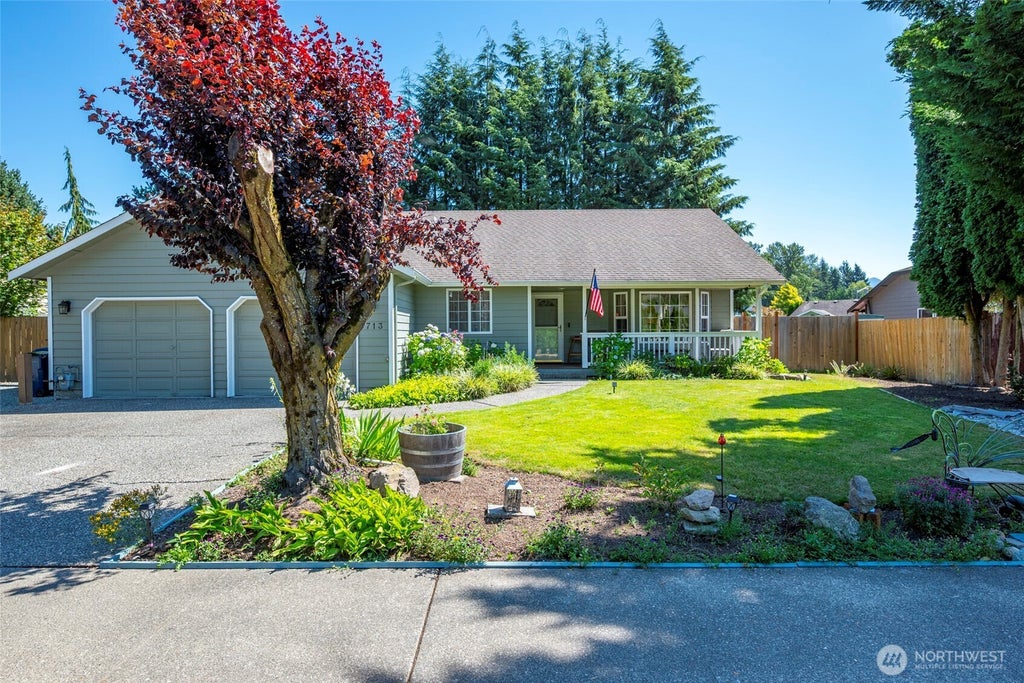 Welcome Home! From the moment you step inside you're greeted by open-concept living w/ soaring vaulted ceilings that create a bright & inviting atmosphere. The kitchen is functional and stylish, featuring tile flooring and ample space for cooking. Dedicated laundry room with sink, 2 generously sized bdrms. The primary bdrm feels like a retreat w/ a walk-in closet, a private ensuite, and direct access to the deck—for enjoying your morning coffee. The fully fenced yard offers both privacy and versatility, complete with a tool shed, a cozy fire pit, and more. Perfect for entertaining. The oversized two-car garage is a dream for hobbyists or DIYers, equipped with its own mini split unit to keep you comfortable. This home checks all the boxes.