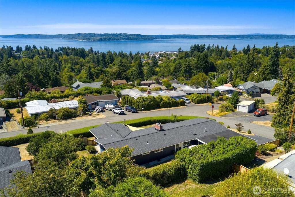 Unobstructed 180' view of Puget Sound and Olympic Mountains. This is a remarkable rambler, w/expansive views from the living room, dining room, kitchen, family room and Primary bedroom. Effective year built is 2023. All mechanical systems have been updated. Thoughtful NW design w/vaulted ceilings, an inviting circular floor plan, and level living except for two steps to the rec room. Kitchen w/ eating bar, quartz counters, and lovely cabinets. Primary bedroom w/en suite bath, large closets, and sliding door to front patio. Dining room with a view, or dine on the patio. Picture colorful sunsets over the Olympics. This home has special features throughout. Extremely private. If you're looking for level living w/sweeping views, welcome home.