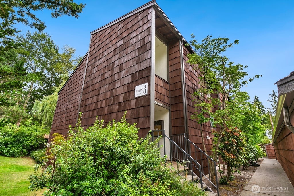 This top floor corner unit at Ravenna Woods exudes privacy and comfort, nestled among willow trees and a nearby creek. Recently remodeled, this home features an updated kitchen and bathroom, engineered hardwood floors and vaulted ceilings, as well as a working wood fireplace. The unit includes a 4-year-old water heater, washer / dryer and plenty of storage space. Outside, the staircase has been updated including freshly painted outside walls and unit doors. This home also includes a loft area great for storage and other creative ideas. Great location offers easy access to Green Lake, UW and Northgate. Dedicated parking space in gated garage also included.