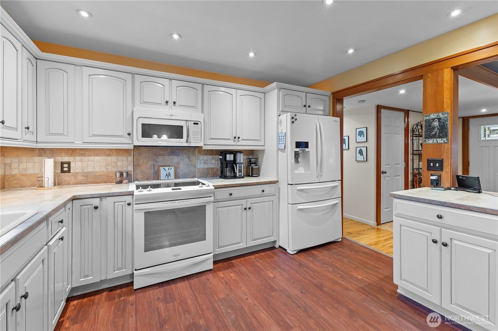 Great Starter Home in Prime Auburn Location! Perfectly positioned between Sea-Tac Mall and the Super Mall, this home sits in a well-established neighborhood with timeless charm. Inside, you'll find beautifully refinished hardwood floors, a tile entry, and a cozy family room with a gas fireplace. The kitchen features tile counters, a breakfast island, abundant cabinet space, and a pantry. The primary bedroom offers a remodeled ¾ bath with new LVP floors, vanity, toilet, and corner shower. The newly updated full bath boasts marble floors, a jetted tub, and granite counters. Enjoy the outdoors with mature landscaping, a Trex deck, and a storage shed. Upgrades include a new cedar fence and cedar siding—move-in ready and full of character!
