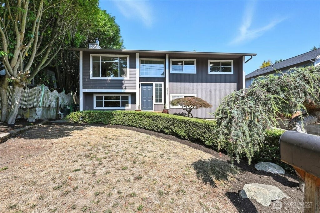 Greenwood Mid-Entry home w/modern updates. NEW Roof! NEW Hot Water Tank! Refreshed kitchen boasts new quartz countertops & cabinets. The circular floor plan connects the dining & spacious living room w/cozy wood-burning fireplace, creating a warm, inviting atmosphere. 3 bedrooms & updated full bath complete main level. Finished lower level offers multi-generational living quarters w/a second kitchen, family room, two bedrooms, & renovated ¾ bath, Outside, enjoy expansive deck, level backyard, perfect for gatherings. Ample space for cars/toys w/off-street parking, utility room, & tool shed. Near Sandel Playground, Crown Hill, Baker Park, shops, dining, & public transit. Zoned N-3. Upzoning potential for ADU or DADU, buyer to verify w/City.