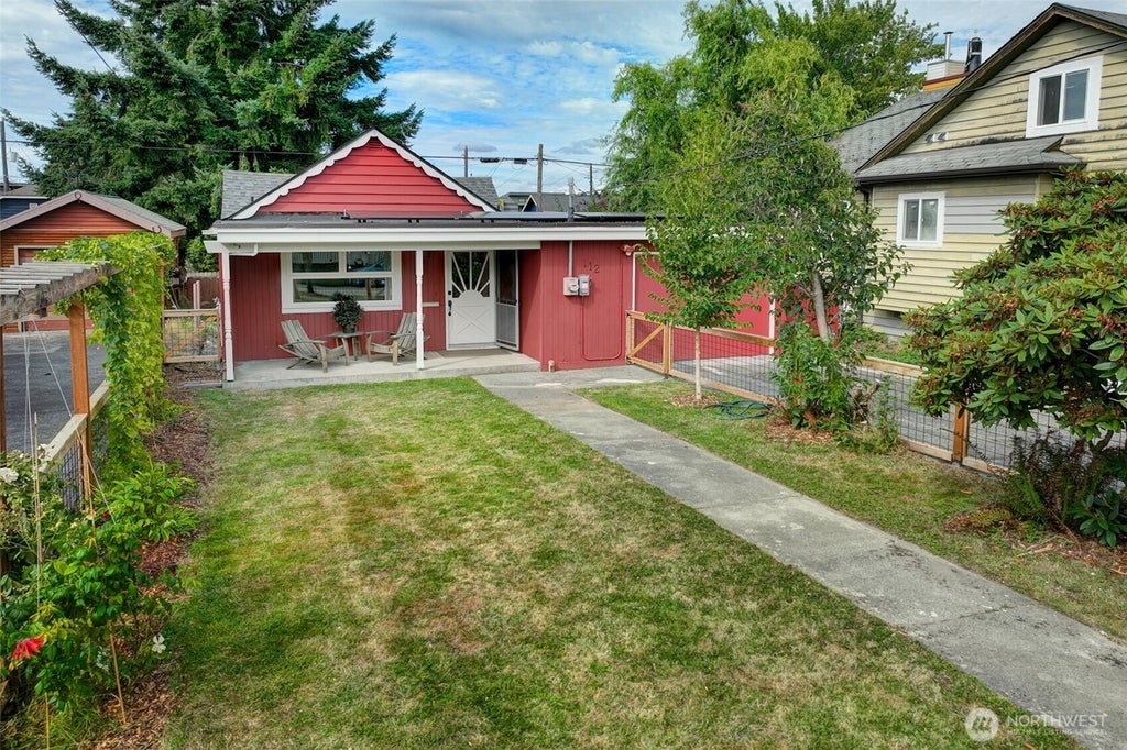 Seller will look at all reasonable offers. With solar panels average monthly electric bill about $21, including EV charging. Updated one story near downtown Greenwood, yet far enough away from main arterials to enjoy peace & quiet. Since 2021, nearly 120k remodel w/ all new wiring, most plaster replaced w/ sheet rock. New kitchen w/double oven, induction stove top & instant hot water. New baths w/ heated floors & thermostatic shower valve in main bath. New roof. Oversized garage, 2-car driveway, & back-alley access. Fully fenced front & back yards. Walkable large, heated crawl space offers storage. 83rd St is a dedicated bike route. Great investment opportunity due to Seattle zoning laws (buyer to verify). Seller inspection available.