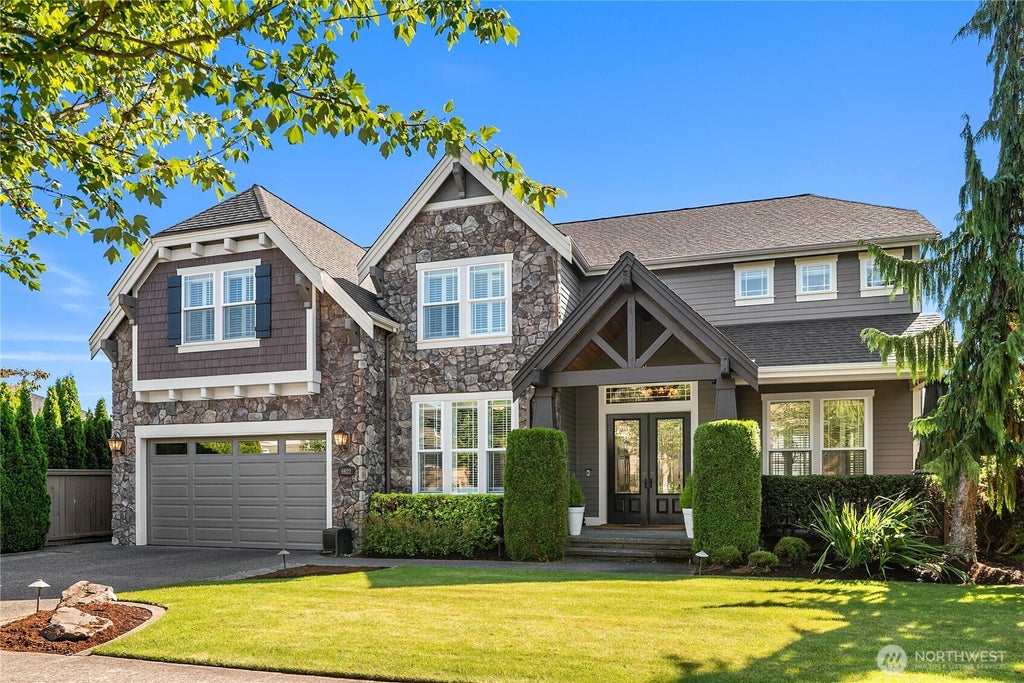 Stunning Steve Jensen custom home in desirable Pinnacle Estates. Grand 2-story entryway w/ curved staircase. 5 bed 2 ¾ bath. Chef's kitchen w/SS appliances, 6 burner cooktop, double oven & custom cabinetry. Formal living, family & den, 10ft ceilings with exquisite millwork throughout. Upstairs leads to luxe primary suite with sitting area w/fireplace, built-ins & views of Mt. Rainier/Cascades. Spa-inspired ensuite w/soaking tub & dual walk-in closets. Huge bonus/movie room. Dedicated office/bedroom off entry & adjacent ¾ bath. Private oasis backyard features covered patio &mature landscaping. Full sprinkler system & landscape lighting. Large tandem 4 car garage & AC. Stroll to Lakeland Town Center, parks/trails. Minutes to 167 & Lake Tapps