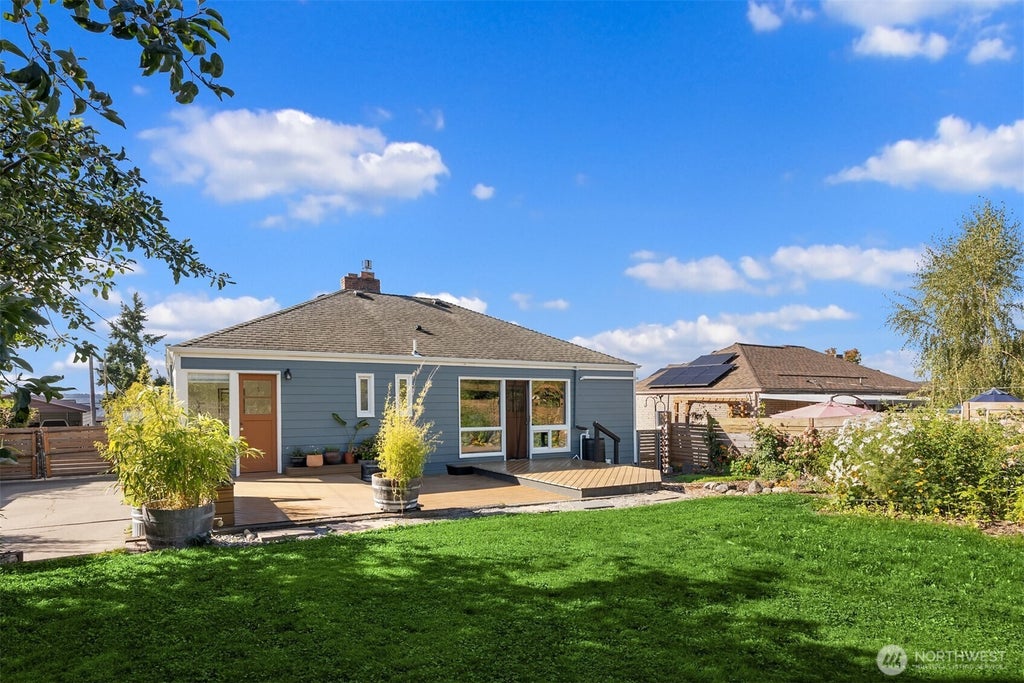 Charming Manette bungalow with views of the majestic Olympic Mountains, Mount Rainier, the Seattle skyline, and waterfront—yours to enjoy every day! This updated 2-bedroom, 1-bath home lives spaciously, with an additional 270 square feet of living space downstairs. Thoughtfully updated through-out you will love the sunlit living room with floor-to-ceiling windows and a gas fireplace. The sunny, level, fully fenced backyard is adorned with beautiful gardens and fruit trees, perfect for entertaining and enjoying sunsets on the large back deck. Located in a quaint and peaceful neighborhood, this home is within walking distance of local shops, cafes, and restaurants, and just minutes to the ferry. Home sweet home!