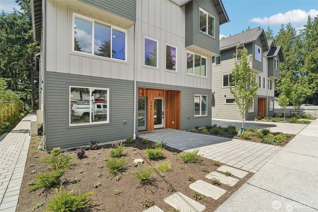 Last home at BLOWOUT price. New construction tucked away on quiet dead-end street in transit friendly Shoreline. Intelligent design, superior finishes and welcoming spaces inside and out. Modern chef’s kitchen w/shaker cabinets, quartz countertops & stainless appliances. Adjacent family and dining room are spacious w/plenty of natural light. Top floor primary suite w/vaulted ceilings & pleasant outlook. 5-piece primary bath & walk-in custom closet. 2 car EV ready garage plus additional flex space. No HOA dues. Quick access to I-5. 5 minutes to either parking supported light rail station. Starbucks, Thriftway & Costco nearby. Easy walk to multiple restaurants, groceries & gym. Ample street parking for guests. 4-Star Built Green.