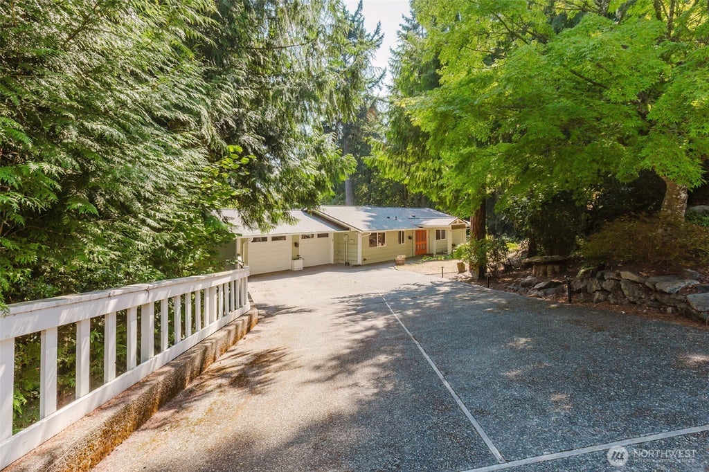 Spacious 5-bed, 2.75-bath one-story home in Eldorado Hills with full daylight basement and over 2,800 sq. ft. on a half-acre lot. Open main floor features mid-century modern design, stainless steel kitchen appliances, and large windows overlooking a private backyard and deck. Upstairs includes a guest room or office and primary with en suite bath and dressing room. Downstairs offers 3 bedrooms, full bath, and large rec room with pellet stove—great for gatherings or MIL setup. Enjoy a hot tub, gazebo, garden shed and wooded trail. Upgrades include stone-coated steel roof, RV parking with dump station, and more. Close to shopping, bases, and highways.