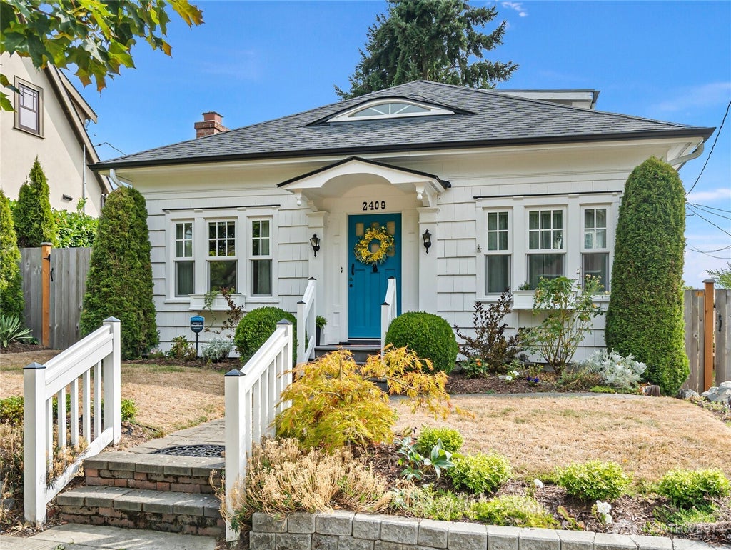 This charming Proctor bungalow is nicely sited on a tree lined street, just a few short blocks from Met Market, Chalet Bowl and Ice Cream Social. Features include a gracious living room with wood burning fireplace, a separate dining room, newer dual pane windows on the entry level, a newer roof, an updated electrical panel and an eat-in kitchen with newer stainless appliances, built-in banquette seating and laundry units. Two bedrooms and an updated full bathroom are located on the entry level. A spacious third bedroom with walk-in closet and a half bathroom are located upstairs. The property also includes an unfinished basement, off street parking and a fully fenced back yard with a patio and a utility shed for extra storage.