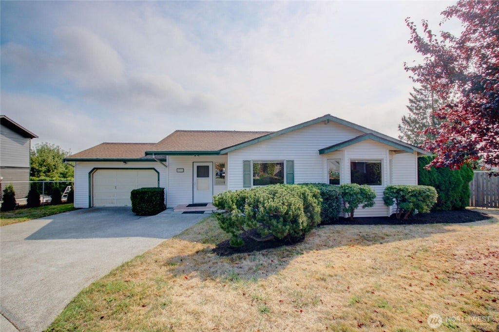 Great starter home or investment in Baker View Estates! This 3-bed, 2-bath rambler offers 1,244 sq ft of single-level living with an attached 396 sq ft garage. Built in 1989 on a 0.18-acre cul-de-sac lot, it features open living/dining areas, well-sized bedrooms, and two baths. The large fenced yard is ideal for gardening, play, or entertaining, with plum & fig trees producing phenomenal yields, Mt. Baker views, and outbuildings for garden storage. With low-maintenance vinyl siding and a composition roof, the home is ready for your updates. Convenient to schools, parks, and downtown Anacortes, this property combines location, potential, and lasting appeal.