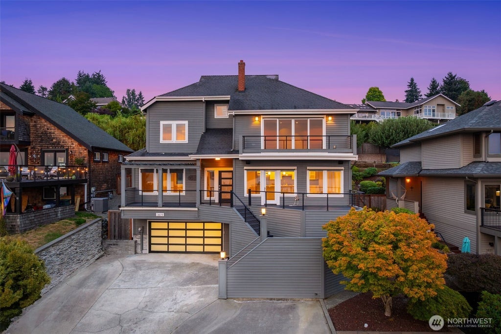 Perched above the Puget Sound, this remarkable University Place home offers sweeping, unobstructed views allowing for perfect sunsets over the water. Inside, natural light floods through walls of windows, highlighting real wood floors & an open layout. The updated kitchen shines w/ new cabinets, quartz, stainless appliances & a spacious island that anchors the great room. Glass doors lead to multiple decks & a large balcony where indoor/outdoor living connect seamlessly. The backyard is equally inviting w/ tiered landscaping, turf & a generous deck perfect for gathering. Downstairs presents an opportunity for an ADU or additional bonus room, creating flexibility for extended living or rental income. UP schools & restaurants close by!