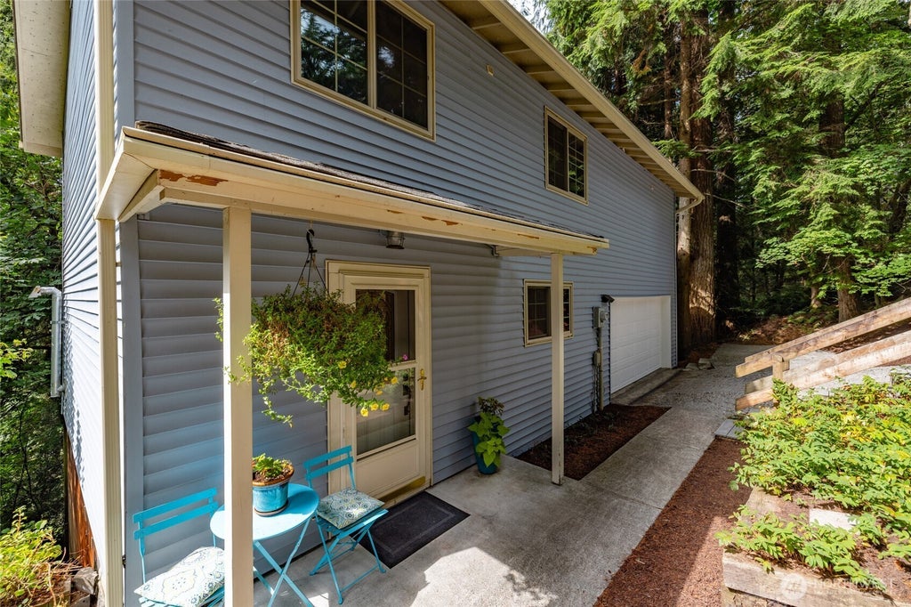 Welcome home to this tastefully updated,affordable home w/flexible living spaces on both floors.Enjoy the main entry w/open concept living room/large kitchen w/eating space,house length synthetic decking overlooking your own private forest.Upstairs leads to another flexible living room space,2 spacious bedrooms w/a shared full bathroom,& the big primary suite,featuring its own full bath & jetted tub.Both bathrooms have new vanities.Updates include a newer roof,laminate flooring,new carpet,interior paint,a cozy warm pellet stove, new decking & railing.Spacious 2 car garage & next door un-buildable green space.Community amenities include parks,trails,swimming pool,golf course,lake acess,beaches and more! Pre Inspected so no surpises too.