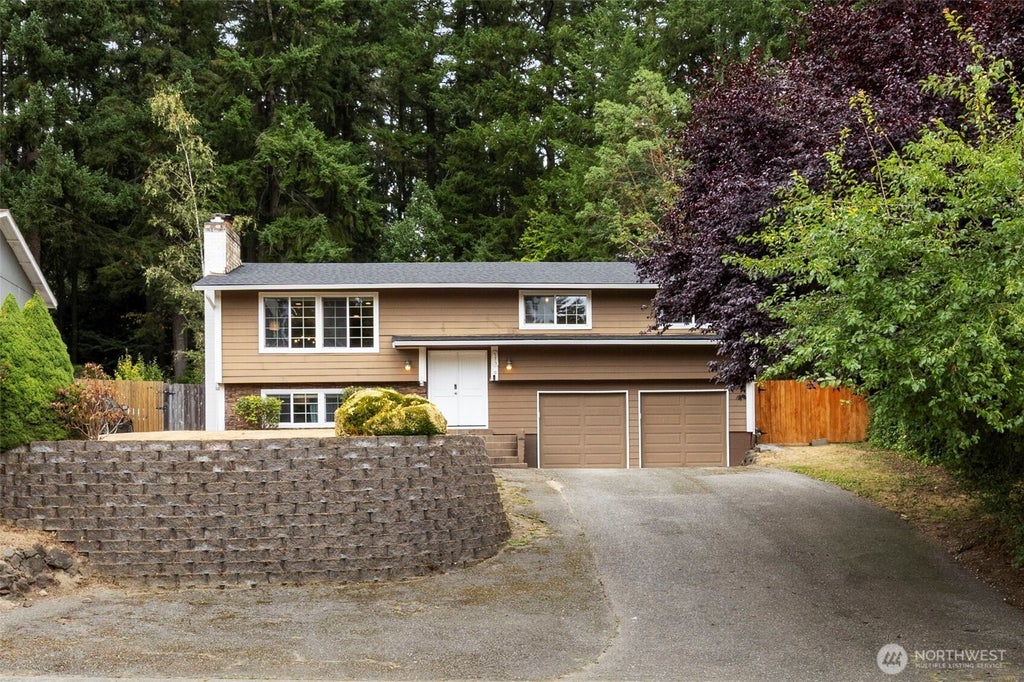 Well maintained updated home w/great street appeal, sits on second largest lot in the popular Parkwood East neighborhood w/ walking trails to Cottonwood Elementary. Step up to an open concept living area w/ vinyl plank flooring & big windows for great light. Slider off Dining room to tiled back deck with wooded views of private fenced backyard. Island Kitchen with breakfast bar, quartz counters, stainless appliances & subway tile backsplash. Other design features include faux shiplap in entry & updated fans/lighting, closet barn doors & a linear electric fireplace. Primary suite is cozy & the bathroom has been updated. On the lower level enjoy the Family/Rec room along w/laundry & half bath. Great location for PSNS commuters. See it today.