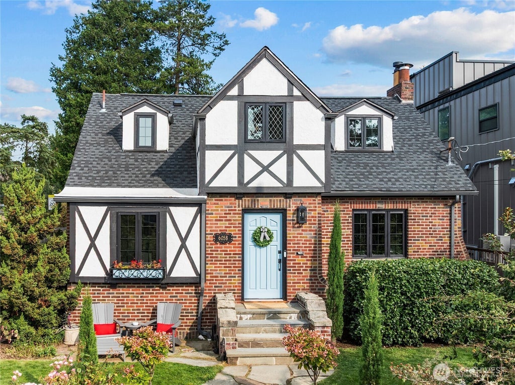 Storybook Tudor with quinnessential brick & timber frame on corner lot in highly desirable Bryant! Includes transferable View Ridge Swim & Tennis Club membership with a 1,000 family waitlist! Thoughtful updates preserve original character—black Andersen windows, SubZero/Wolf kitchen, new Gable roof, designer paint, & updated baths. Light-filled spaces with extensive architectural details throughout including arched, elaborate doorways, charming enclaves and rooflines. Stunning landscape design compliments exquisite exterior w/ private yard & stone patio, covered pergola & raised beds—fulfilling outdoor living dreams. Heating/Cooling for comfortability & detached garage for gear storage. Close to eateries, U-Village, Burke-Gilman & Downtown.