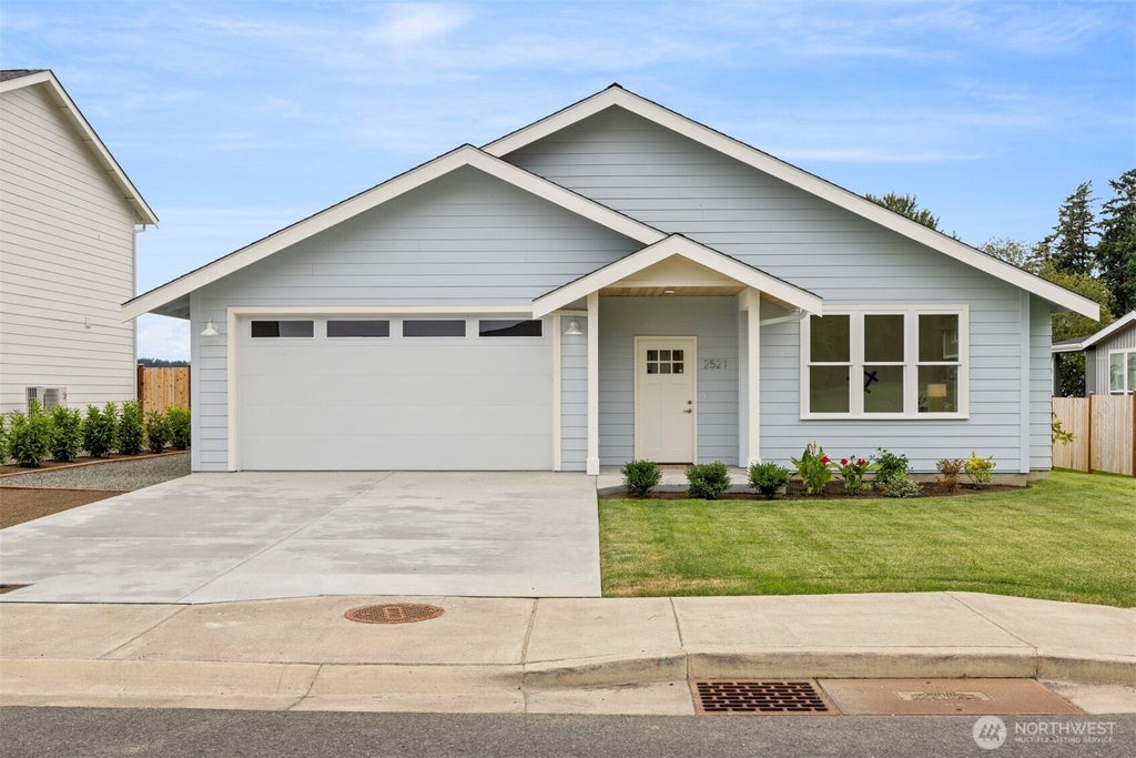 This newly constructed, single-level home is beautiful and located in a wonderful new development along the shores of Drayton Harbor, which features parks and walking trails throughout. The home is bright and airy, showcasing modern finishes and an excellent open floor plan. There is a butler's pantry adjacent to the kitchen, which opens to the living and dining areas. Near the front entry, there is an office, along with three bedrooms. The primary suite offers stunning saltwater views, and its bathroom features a sleek soaking tub, as well as a separate glass shower. The landscaped lot is level and fully fenced.