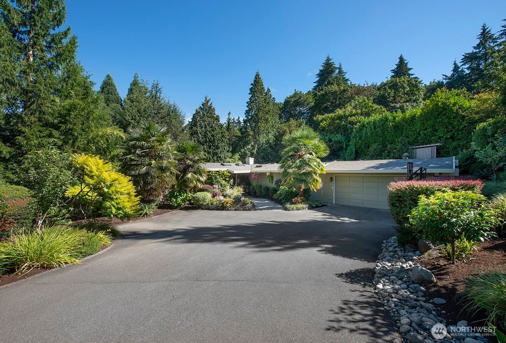 NW contemporary, remodeled home sited on shy half acre lots wiyh lush plantings. Adjacent to city greenbelt.