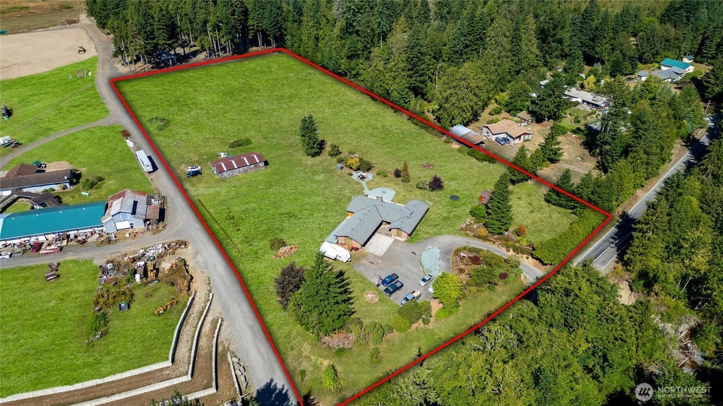 One level home on 5.3 acres 2,080 of finished space plus 1,664 unfinished basement. Primary bedroom with renovated bathroom. 2 spare bedrooms plus one full bath on main. Living, dining, and kitchen as well as spacious utility room. 2 car garage with 1/2 bath off garage. Large animal barn plus fencing for livestock. Shed included in sale.