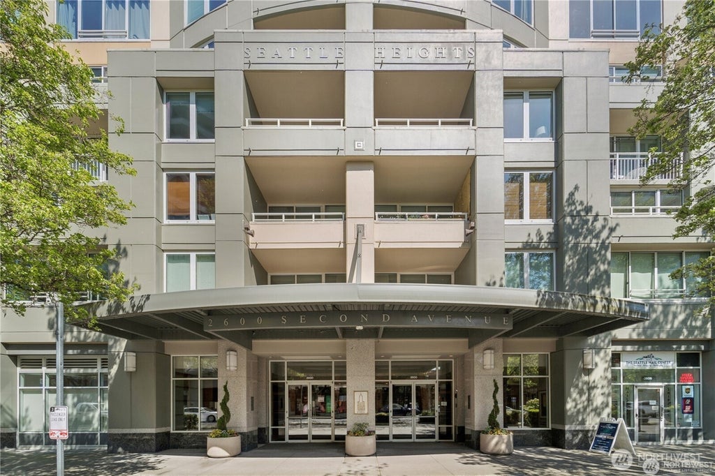 Open and bright Studio nestled on the 4th flr! This well-appointed and uber-efficient floorplan lives large featuring a fully equipped kitchen with breakfast bar, open living area, spacious bathroom nook, private covered balcony, and tons of storage throughout. Newly refreshed, additional home highlights include air-conditioning, high-ceilings, amazing natural light, and an in-unit washer/dryer. Seattle Heights is an iconic staple to the Belltown skyline offering residents luxury high-rise amenities including a 24hr concierge, pool/spa, view BBQ terrace, fitness center, clubroom, business center, and more!