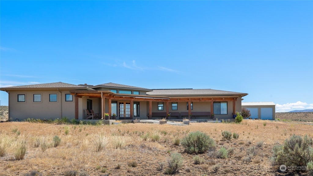 Discover your dream home with breathtaking views of Mt. Rainier and the serene valley. Nestled in nature, this peaceful, quality-built retreat offers a gourmet kitchen ideal for culinary adventures and radiant heated floors for year-round comfort. The expansive great room features a cozy fireplace and 12 ft ceilings, bathed in natural light from large windows. Designed for entertaining, enjoy a thoughtfully designed split bedroom plan, with a luxurious primary suite boasting a soaking tub, shower, and walk-in closet. Relax on the covered front porch, perfect for watching stunning sunsets, or entertain on the back patio. A spacious shop and an attached two-car garage complete this idyllic property, offering endless possibilities. A must see!