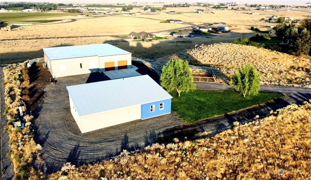 Stunning home with a shop and possibly the best view in Moses Lake!? This home and view are an absolute must see! Extremely well thought out custom contemporary home, this home features a very large, deep garage! In addition, a detached shop with a 2 Br, 3/4 B living space! Situated on 4.46 acres of space for all of your needs, close to Moses Lake! Hwy 17 minutes away, as is Connelly Park with boat launches! Fenced garden space, RV/boat parking! 10' ceilings & huge windows bring the lake and mountain views inside! Open floor plan, large living spaces, gas stove with ventilation, matching appliances, and island really make this home an entertainer's dream! Step out onto the large covered patio to take in the incredible panoramic sunsets!!