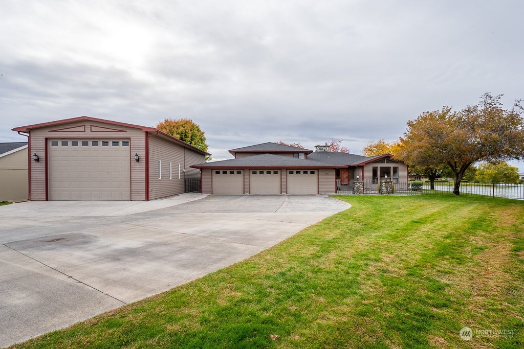 LOOKING FOR AN EXCEPTIONAL LAKE RETREAT!!! THEN THIS HOME IS A MUST SEE!!! It offers something for everyone, featuring a heated RV shop and ample storage for an RV, boat, or any toys you might have. With two boat lifts and a stunning outdoor living area equipped with a built-in gas fireplace, a fully integrated indoor and outdoor sound system, plumbed in propane ports to run both your outdoor heaters and BBQ it's ideal for entertaining. The home boasts 5 bedrooms and 3.25 baths, including a family room with a fireplace insert on the main floor and a rec-room downstairs. There are 2 bedrooms and a bath downstairs, and upstairs, you'll find 3 bedrooms, including the primary bedroom. THIS HOME DEFINITLY HAS IT ALL— COME SEE THIS HOME TODAY!!!!