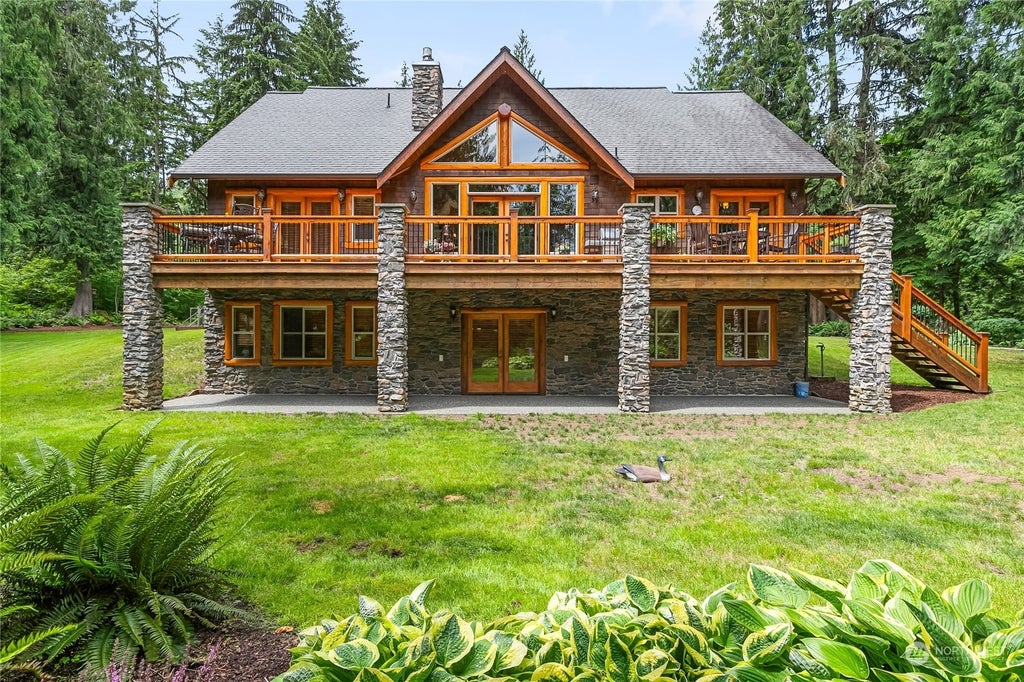 Nestled on 5 wooded acres, this remarkable custom stone & timber home seamlessly blends rustic charm with modern luxury. Featuring 3 bedrooms and 4 bathrooms, every space is designed with exquisite attention to detail. A gated entryway ensures privacy and tranquility, while the kitchen showcases honey oak cabinetry and granite countertops that carry into the baths. Radiant heat provides year-round comfort, and a hand-honed log staircase adds natural beauty. Ideal for gatherings, the home features four stone fireplaces throughout, creating warm and inviting atmospheres. Home is a gem! 1% lender credit(up to $7500) offered through my preferred lender, AmyBaker@movementmortgage.