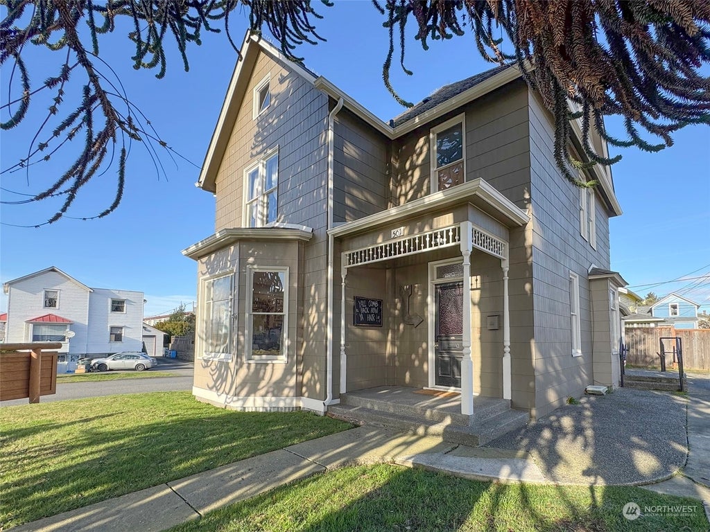 A turn-of-the-century Victorian home brimming with period touches such as original wood trim around the windows, doors, and baseboards. The possibilities are endless for a charming business or residence. Zoned CA - Commercial Arterial, this property allows for professional and medical offices, a hostel, gallery, adult family home, as well as single and multi-family residences. A paved parking lot with six spaces plus additional parking along First Street. The exterior was painted approximately four years ago, and it was re-roofed around the end of 2008. Potential to increase the square footage by finishing the attic area as well. Customize to suit your business and personal needs.