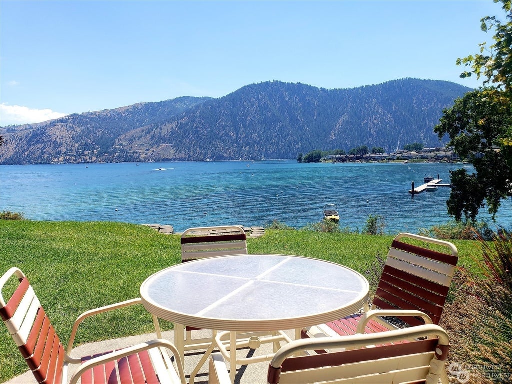 Enjoy LOCATION & LAKE VIEWS in this 2 bed 2 bath spacious 2 level townhouse condo located close to the sandy beach waterfront amenities & outdoor pool. Upcoming Weeks: July 18-25 & Oct 10-17 in 2025. Jan 16-23; April 10-17; HOLIDAY July 3-10 & Sept 25-Oct 2 in 2026. Jan 1-8; March 26-April 2; June 18-25; Sept 10-17 & Bonus Week Dec 17-24 in 2027. No stairs entry to all main level living space: kitchen, living room, bedroom, bathroom and patio. Upper level with spacious Primary Bedroom & Full Bath. $1005 per quarter HOA fees makes this the most affordable way to experience 4 rotating weeks every year at Wapato Point Resort! Use your weeks, rent for income or trade thru RCI or Interval International & visit other places.