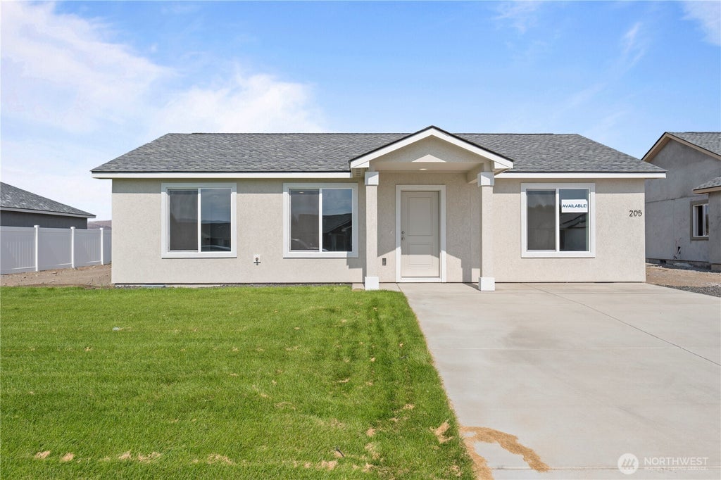 This brand-new, move-in ready home offers 3 bedrooms and 2 bathrooms with a layout designed for both comfort and functionality. Quality features include double-pane storm windows, durable stucco siding, and front yard landscaping for curb appeal. Inside, you’ll find solid wood cabinetry throughout, a convenient pantry and linen closet, quality laminate countertops, and plush carpet with 8 lb padding. A central heating and cooling system provides year-round comfort, while thoughtful details and modern finishes complete the home. Please note: photos may include upgrades or furnishings not included in the base price. *Builder Incentive not included on this home.