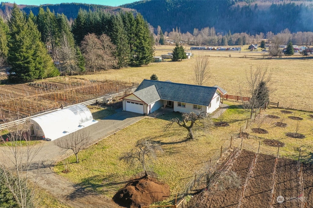 Nestled at the base of the stunning Cascade Mountains in Glenoma, this picturesque 3+acre working farm offers breathtaking panoramic views and a well-maintained, charming home—the perfect blend of rural tranquility and modern comfort. The profitable established farm, offers fantastic opportunity for homesteading, commercial gardening, or simply enjoying the beauty of open land. The home offers an open feel, newer appliances, and several upgrades throughout. With its prime location just between White Pass ski resort, I-5, and just minutes to Mayfield lake, there's opportunity for VRBO! This property provides both seclusion and convenience. Don't miss this rare opportunity. Your slice of paradise where you can live, work, and thrive!