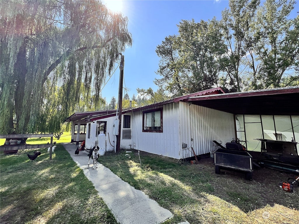 Beautiful riverfront property with a solid one level rancher style home. Spacious living room, galley style kitchen, nice sized mud room and large covered patio area. Low bank Kettle River frontage for easy swimming and fishing access. Huge field in the front for animals or gardening. Attached carport and detached garage with attached building for storage, animals or? Easy year around access and close to the Ferry County Rail Trail and Canada. Lots of possibilities.
