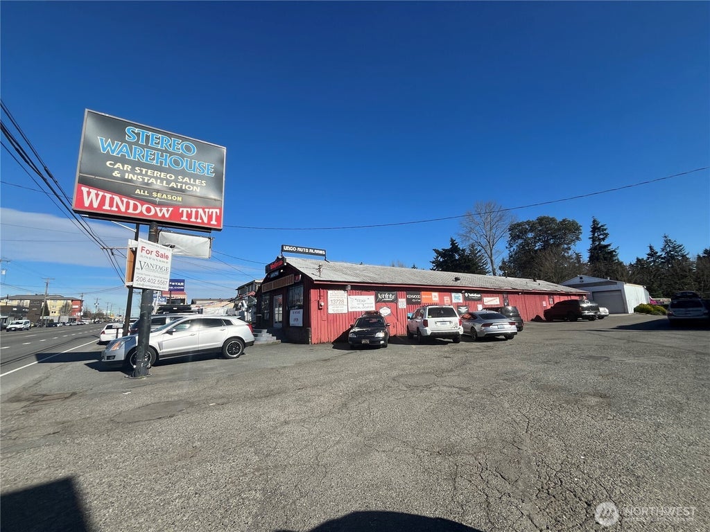 Front building on site, mixed retail sales floor and storage warehouse. Asking lease rate $17/SF/YR plus NNNs.