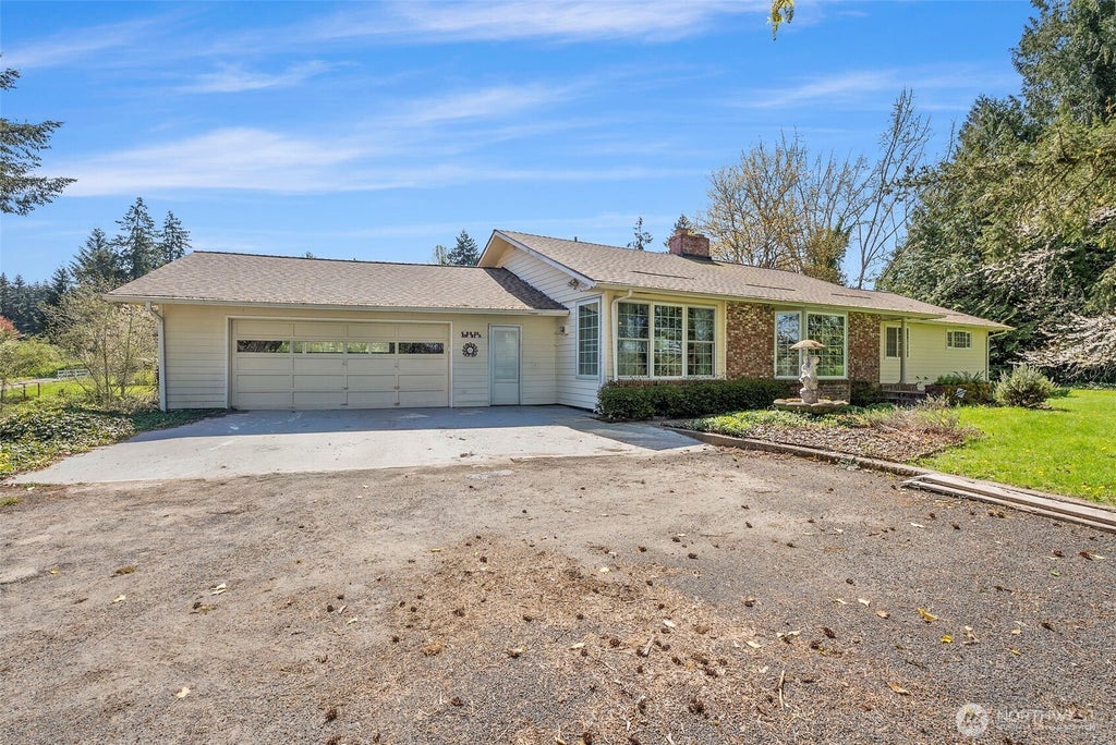 Stunning 4-bedroom, 3-bathroom home offering 4180 sq ft of versatile living space. The main level features a generous primary suite with a private sitting room, formal dining, double living room and an office. The daylight basement has a second kitchen—perfect for multigenerational living or guest accommodations. Two additional bedrooms, a bathroom, finished storage room and a multi-use space. Recent upgrades include Leaf Guard Gutters, Anderson windows and roof replacement within the last three years. Enjoy serene territorial views from nearly every room and relax by your private pond nestled at the back of the 3.14-acre property surrounded by fruit trees. Located at the end of a quiet drive, this home offers peaceful privacy.